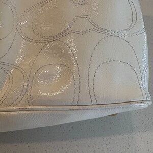 Authentic Signature Coach Ivory Patent Leather Tote Bag