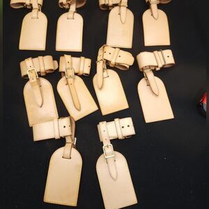 These are authentic LOUIS VUITTON vachetta leather Luggage tag and Poignants. They in new condition, no damages no issues what so ever.