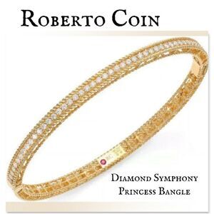 Authentic New Roberto Coin Diamond Symphony Princess Bangle In 18kt Yellow Gold with Dust Bag