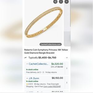 Authentic New Roberto Coin Diamond Symphony Princess Bangle In 18kt Yellow Gold