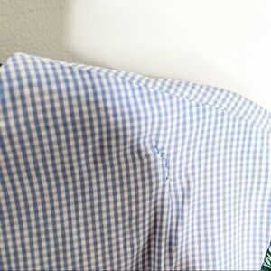 Cute blue plaid dress. One small repair has been done to the top of one shoulder (pictured). Otherwise in good used condition size 6.