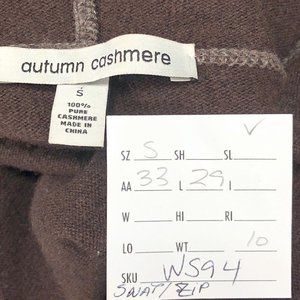 Autumn Cashmere Women’s Toogle Hooded Hoodie Full Zip Poncho Brown Taupe Contrast Medium Gauge Knit Thigh Length Scoop Hem Unlined Snap Side Sleeves