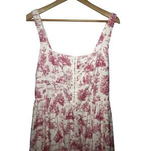 Avec Les Filles Dress Womens 14 Pink White Linen Blend Sea Print Mermaid Nautical