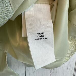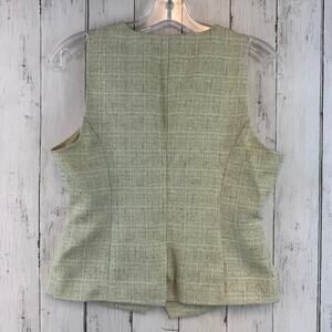 Avec Les Filles Green Textured Tweed Suit Vest Fringe Pockets V-Neck Size Small