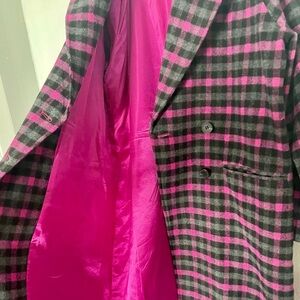 Excellent Condition. Never worn. Front pockets and back vent still sewn shut. Spare button included.Colorful modern twist to basic plaid coat.