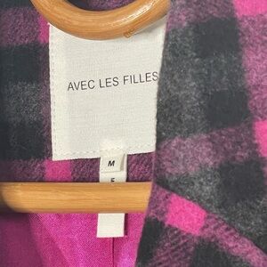 Avec Les Filles Plaid Double Breasted Coat Grey Black Pink. Size Medium. NWT.