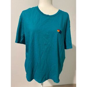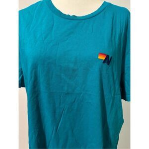 Aviator Nation teal blue logo distressed  tee XL great condition