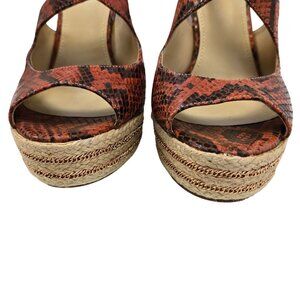 B Brian Atwood Leather Dekoda Snake-Print Platform Wedge Sandals Size 6
