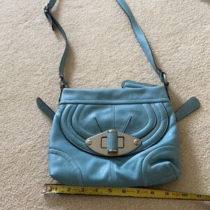 B Makovsky blue leather cross body bag with animal print lining great condition