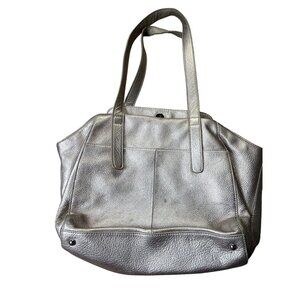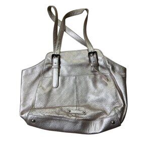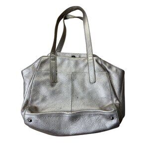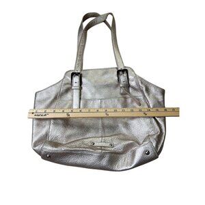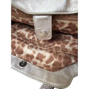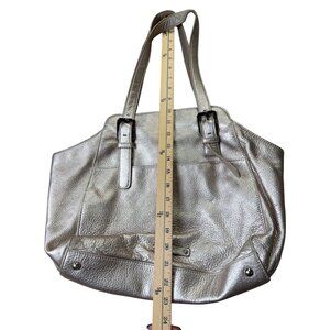 B. Makowsky Silver Leather Designer Shoulder Bag With Adjustable Straps
