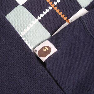 BAPE sweater, streetwear,  argyle sweater,  thermal crewneck,  women's navy sweater,  casual wear,  cotton sweater,  A Bathing Ape,  argyle design,  stylish sweater,  long sleeve sweater,  Japanese brand,  ribbed cuffs,  crewneck thermal