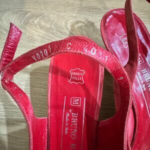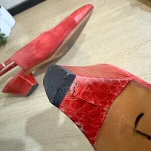 BRUNO MAGLI Red VTG Pumps SZ 9 AA Cap Toe Slingback Heels Suede Snake Embossed Cap Toe and Wrapped Kitten Heel