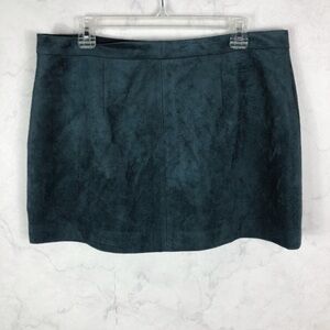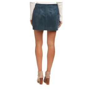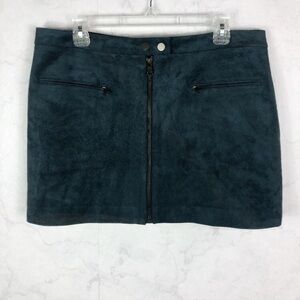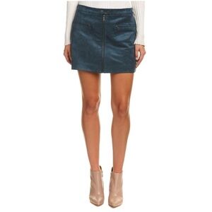 BCBG MaxAzria Dark Blue Green Faux Suede Skirt. Zippered Front Details. Zipper Front Welt Pockets. Cute & Comfy. No stains or rips. New with tags. Strucutured Miniskirt. Supple Faux Suede. Flattering & Edgy. No stains or rips. New with tags.