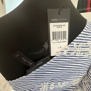 BCBG MaxAzria Striped Crochet Blue one shoulder Size 2 eyelet NWT