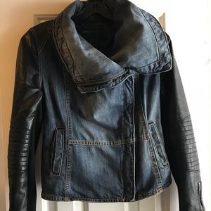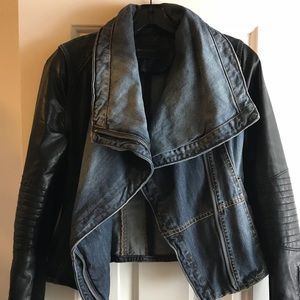 SALE ❤️ Last price... Jeans and Faux Leather mix draped Jacket size XS worn a few times...