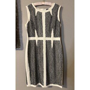 BCBGMaxAzria Rumor Dress 12 Ivory Black Stretch Sheath Sleeveless Career Church