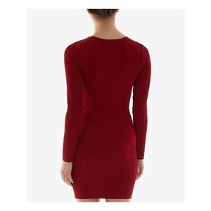 BCX DRESS Womens Red Ribbed Tie Adjustable Ruching Center Front Long Sleeve V Neck Short Party Body Con Dress Juniors M