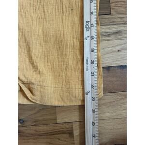 This BDG Urban Outfitters jumpsuit in size small features a square neckline, pullover closure, and is made of a gauzy cotton linen blend in a vibrant yellow color. The sleeveless jumpsuit has a relaxed fit with wide-leg pants and is perfect for summer, fall, or spring. It includes a cute bow accent and pockets for added convenience, making it a comfortable and stylish choice for casual or travel occasions. Good used condition. Please see measurements for most accurate fit.