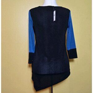 B.Design Womens Colorblock Tunic Small Asymmetrical Blue Teal Black 3/4 Sleeve