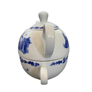 This delightful teapot and teacup set features the beloved character Peter Rabbit in a charming floral pattern. The set includes a teapot, lid, and cup, all made of glazed porcelain in a beautiful blue color. Perfect for any occasion, from Easter to casual tea parties, this medium-sized set has three compartments and a capacity of 8 oz.