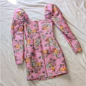 BEC & BRIDGE Pink Peony Party Jacquard Puff Shoulder Mini Dress, size 4