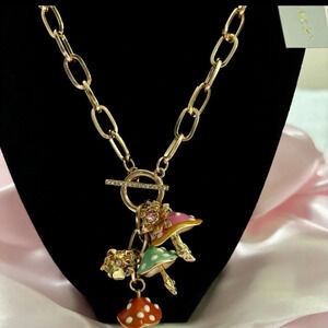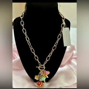 BELLA JACK Gold Front Toggle Closure Multiple Multicolored Mushroom Necklace NEW NWT