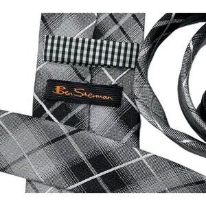 BEN SHERMAN Men's 100% Silk Necktie DESIGNER Tie Gray Tartan W:2.7" EUC