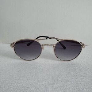 Featuring gradient lenses and a Betsey Johnson brand label, these sunglasses are the perfect addition to your collection. With a theme of the iconic designer, these sunglasses are rimmed in gold tone metal and inlaid pink hearts on the nose piece as well as a gold star on each corner. (Please note there is a pink heart missing on the stem behind the ear piece which is not noticeable)