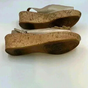 Bjorndal Daphne gold open toe wedge sandal. Leather upper. Size 10M. Please see photos for detail and item condition.