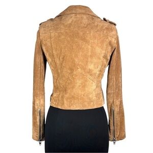 BLANK NYC COFFEE BEAN BROWN TAN SUEDE LEATHER CROPPED ZIP MOTO BIKER FALL JACKET