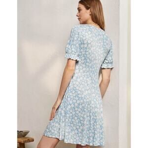 BODEN V-Neck Jersey Dress Dusty Blue Ditsy Prairie Floral Sz 12 Reg {3A16}
