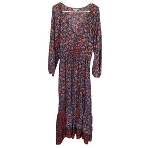 BOEMO Maxi Dress XL Floral Cottage Bohemian Prairie Peasant Farmhouse Retro