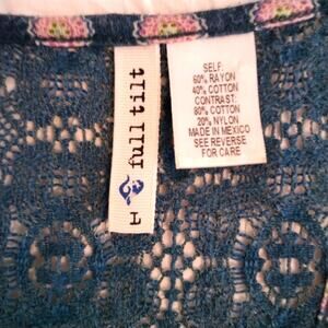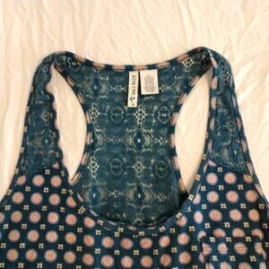 Full Tilt BOHEMIAN Summer Top BLUE Racer Back Lace EXOTIC BOHO PATTERN