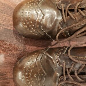 Size 8 brown kitten heeled witch shoes, major The Craft vibes. Laces are in need of replacing.