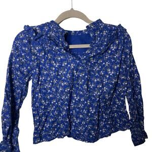 BONPOINT BLUE FLOWER PRINT LONG SLEEVE RUFFLE TOP sz 10