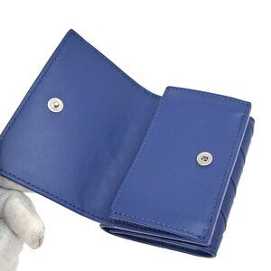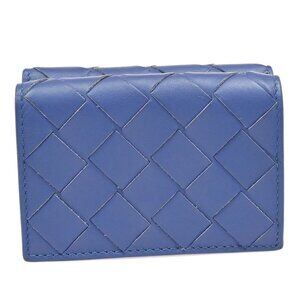 BOTTEGA VENETA INTRECCIATO Trifold Compact Wallet Leather Blue Italy 35KA812