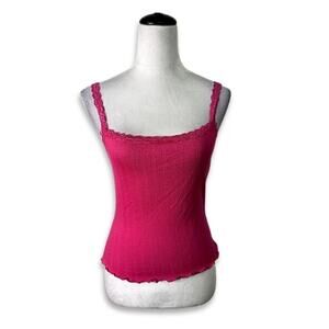 BP Crop Top Sleeveless Ribbed Material Lace Straps Eye Catching Hot Pink W S NWT