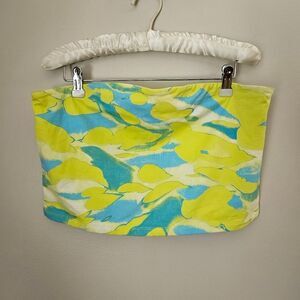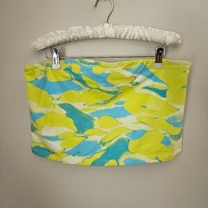 BP Tube Top Crop Strapless Blue Yellow Tie-Dye Casual Summer Vacation Neutral