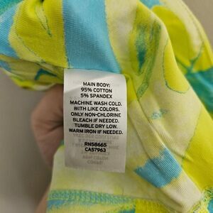 Cute yellow & blue crop top perfect for everyday wear. Sleeveless. Cute on its own or under a cardigan or jacket.