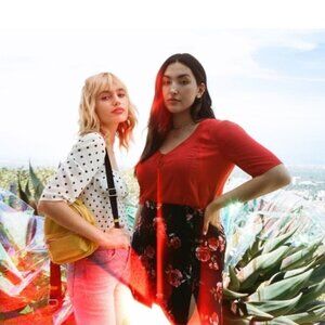 BP X Claudia Sulewski Tie Neck Red Polish Top XL
