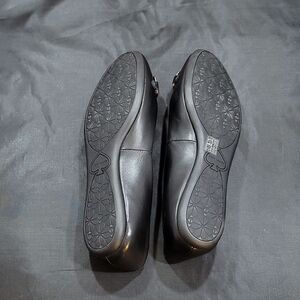 BRAND NEW LEATHER PHOEBE FLAT IN BLACK SIZE 8 COLOR BLACK An iconic spade sweetly brands the gilded hardware detailing the vamp of this understated wear-with-everything flat set on a flexible rubber Shining hardware adorns the understated slip-on profile of Kate Spade New York's Phoebe flats for a smart addition to both dressy skirts and casual skinny jeansRound-toe slip-on flats Hardware detailing at toe cap Leather upper; leather lining; leather sole THIS ITEMS IS BRAND NEW WITH TAG CHECK THE PICTURES