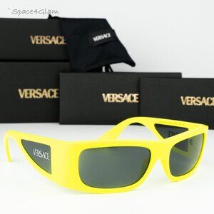 BRAND NEW Versace VE4482 544987 LOGO Yellow Fluo Dark Grey Rectangular Unisex Sunglasses