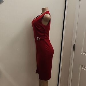 BRAND NEW ENFOCUS STUDIO V-NECK SLEEVELESS WOMEN'S SHEATH DRESS SIZE 8 COLOR RED INVIBLE BACK ZIPPER CLOSURE GOLD METALLIC EMBELLISHMENTS DESIGN TOCTHE SIDE SMALL SPLIT IN THE BOTTOM FROND MADE WITH SHELL 97%POLYESTER 3%SPANDEX LINING 100%POLYESTER THIS ITEMS IS BRAND NEW WITH TAG CHECK THE PICTURES(FYI THE FIRST PICTURES IS JUST MODEL TO SHOW WHAT THE DRESS LOOK ON CHECK THE PICTURES)
