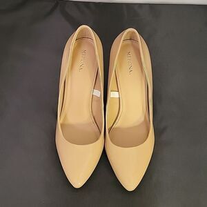 BRAND NEW MERONA POINTED TOE HIGH HEEL STILETTOS PUMP SIZE 10 COLOR TAN MADE WITH ALL MAN MADE MATERIALS HEEL HEIGHT MEASUREMENTS APPROX 3.25"INCHES THIS ITEMS IS BRAND NEW WITHOUT TAG OR BOX CHECK THE PICTURES