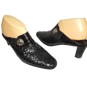 BRIGHTON Tryst Women's Black Leather Slip-On Woven Slide Heel Mules Size US 9M