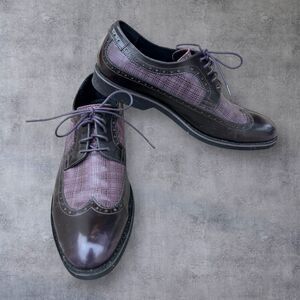 Elevate your footwear collection with the BUGATCHI Wingtip Oxford Dress Shoes, a testament to classic style and modern sophistication. Crafted in Italy, these shoes feature a sleek purple leather upper with a distinctive wingtip design, perfect for adding a touch of elegance to any outfit. Designed with the discerning gentleman in mind, the shoes boast a comfortable leather insole, lining, and outsole, ensuring a luxurious feel with every step. The standard shoe width accommodates a variety of foot shapes, while the solid pattern and refined lace-up closure make these shoes a versatile choice for both casual and formal occasions.