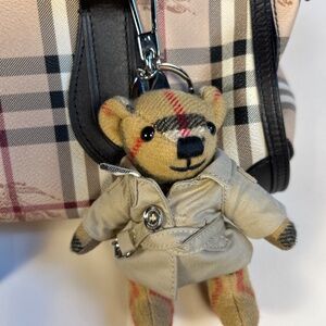 Very Gently Used Authentic Burberry purse in Excellent Condition with a soft Burberry Teddy Bear charm w/classic trench coat included!