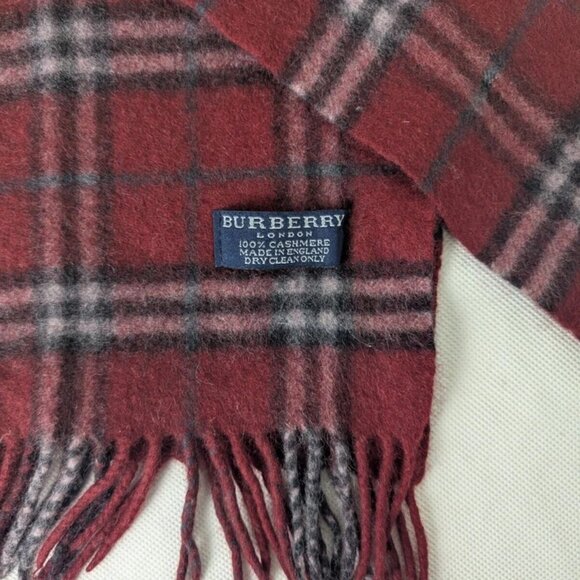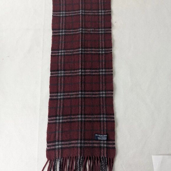 BURBERRY London Classic Nova Check Knit 100% Cashmere Neck Warmer Maroon SCARF