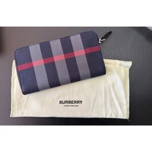 BURBERRY Long Zip Wallet*Blue Check & Red 100% Cotton & Leather*NEW with TAGS