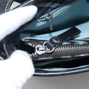 BURBERRY Nova Check Blue Label Shoulder Bag Canvas Blue Silver Auth BD488